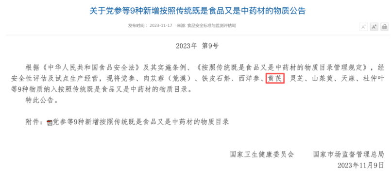 黄芪是中药材中常见的补品之一,素有「补气之王」的美誉,是中医常见且重要的补气药材,被视为上等药材,属多年生草本植物,药用部分为干燥的根部。其性微温,归脾经和肺经,具有益气固表、提升免疫力、利水消肿等多重功效,故被广泛用于调理体虚、脾胃虚弱、水肿等症状。2023年,黄芪被纳入药食同源物质清单。