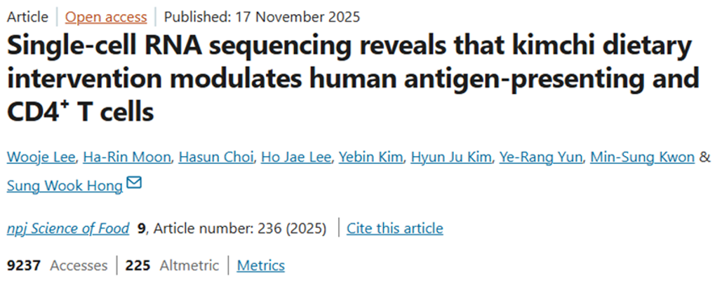 总体而言,本研究首次以单细胞分辨率展示了泡菜对人类免疫系统的特异性调控模式:在不扰乱免疫细胞组成的前提下,通过强化抗原呈递细胞驱动的信号网络并塑造 CD4⁺ T 细胞的功能分化,泡菜作为传统发酵食品可促进更加敏锐而可控的免疫反应。