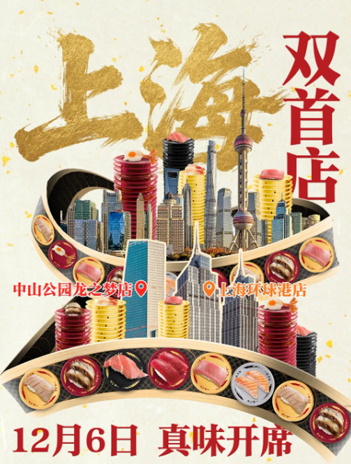 据公司官方微博宣布,12月6日,日本回转寿司龙头寿司郎(Sushiro)在上海的双首店——环球港店与中山公园龙之梦店将正式开业。